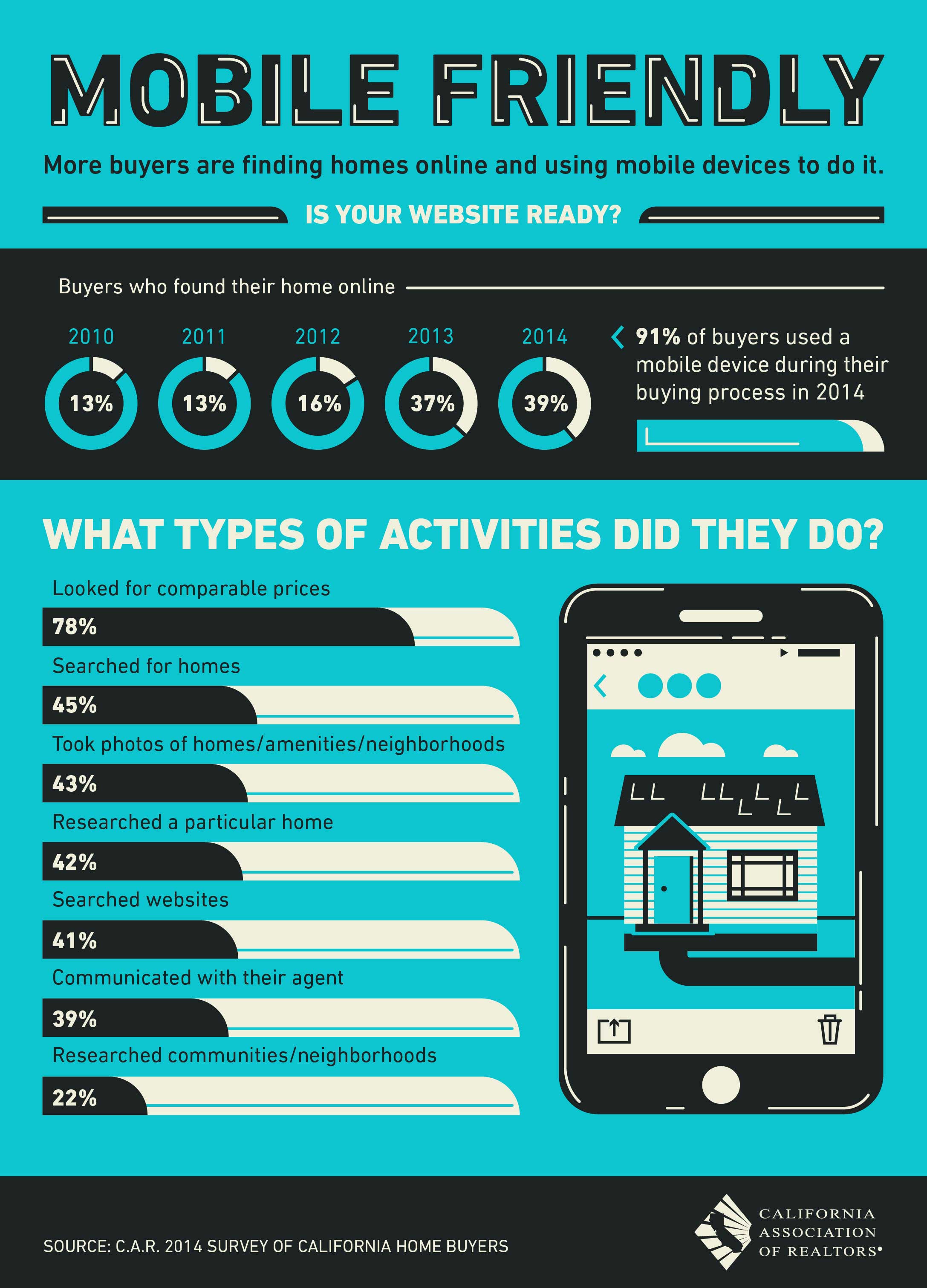 According to a California Association 2014 survey of home buyers, more people are finding homes online, with 91% of them using a mobile device during their search.