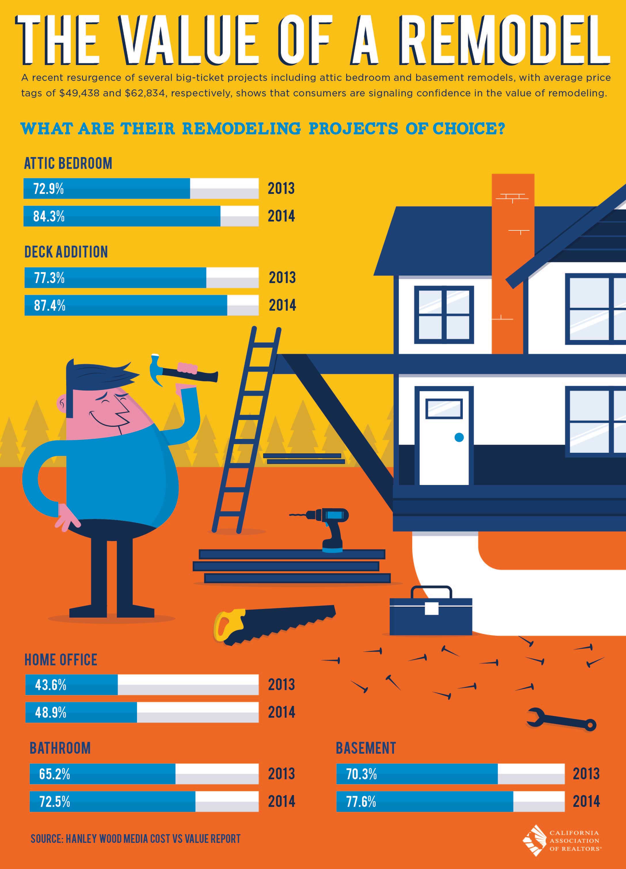 According to a Hanley Wood Media report, a recent uptick in big-ticket remodels signals an increase in consumer confidence in the value of a remodel.